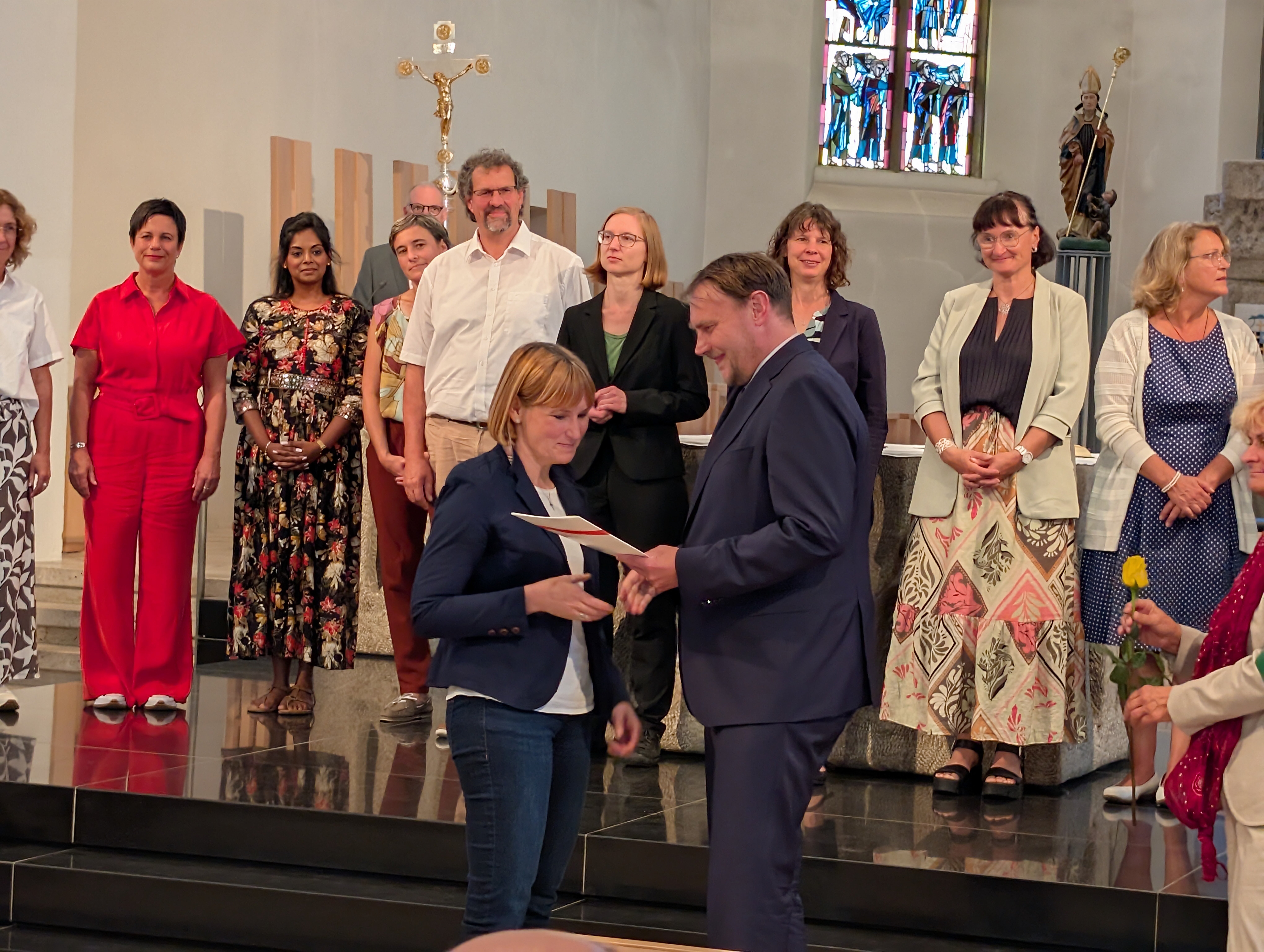 Am 19.9. durften wir uns darüber freuen, dass Helga Brech zur Beauftragten für Schulpastoral ernannt wurde. In einem feierlichen Gottesdienst im Rottenburger Dom St. Martin erhielt sie nach zwei Jahren Ausbildung ihr Zertifikat aus den Händen von Prof. Dr. Matthias Gronover, dem Vorstand der Stiftung Katholischer Freier Schulen. In seiner Predigt betonte Domkapitular Holger Winterholer die verschiedenen Wege der Berufung und ermutigte die neuen Beauftragten für Schulpastoral, im Vertrauen auf die Kraft Gottes die Saat des Senfkorns an ihren Schulen gedeihen zu lassen.