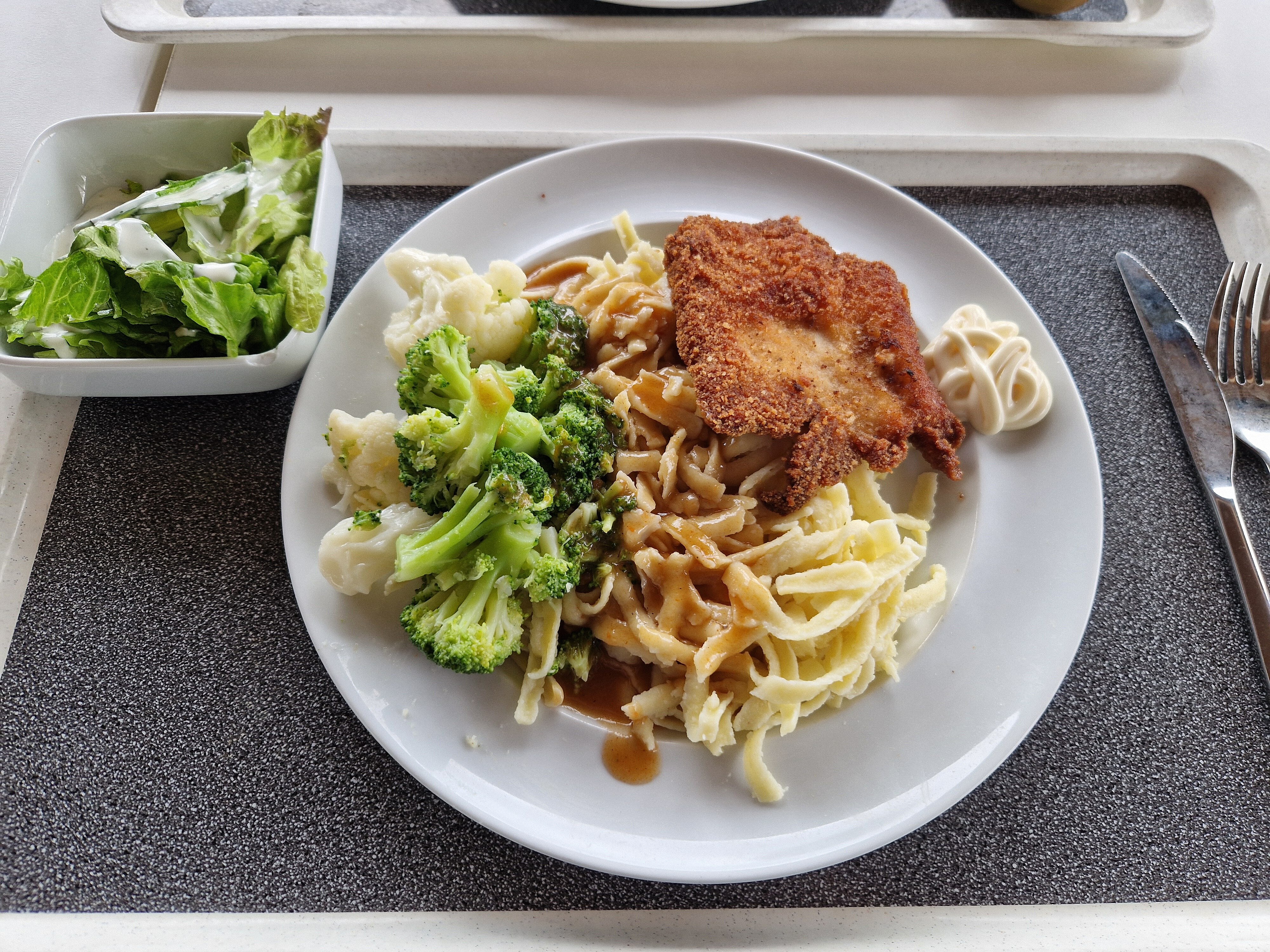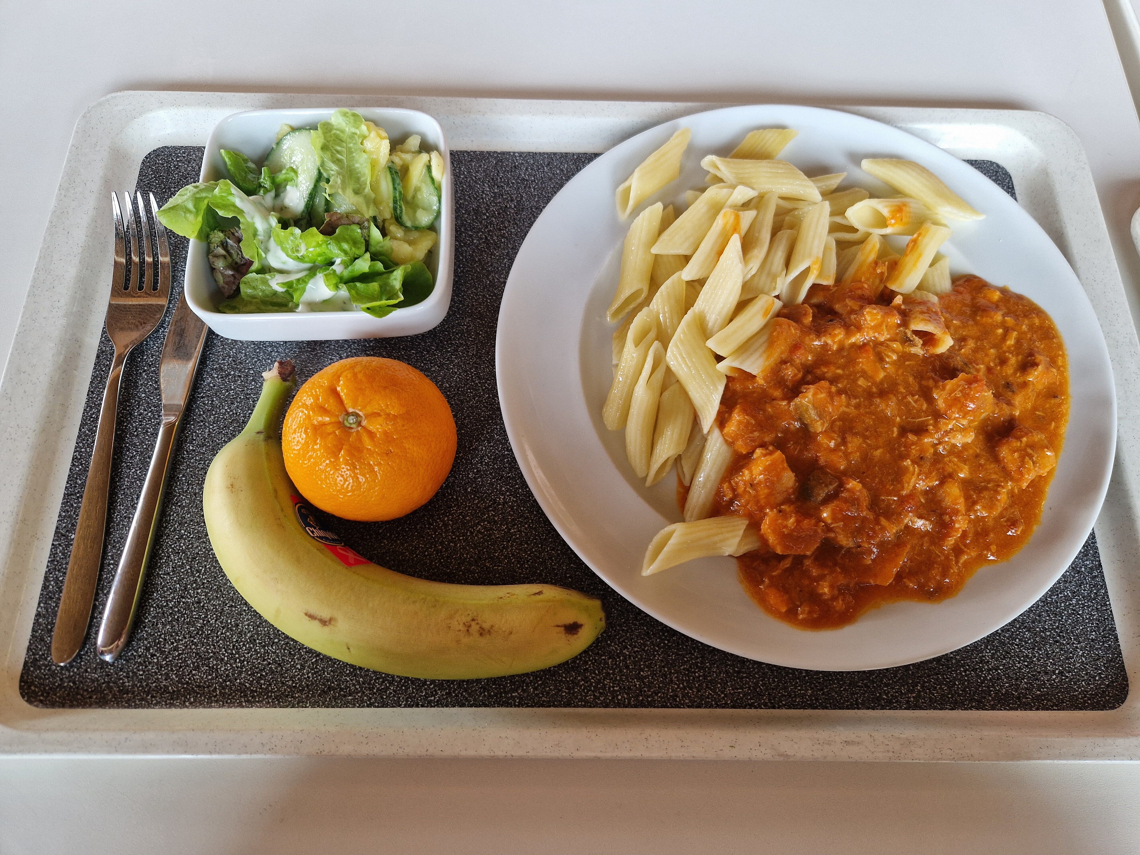 Die Herausforderung für sein Team an unserer Schule ist, hunderte Portionen gleichzeitig anzubieten. Denn gleichzeitig hat Herr Schäfauer den Anspruch, dass ein Essen in der Schule qualitativ nichts anderes ist als in einem Restaurant. Damit das gelingt, hat das Team des Ganztagsbereichs einen Zeitplan ausgetüftelt, so dass es bei der Ausgabe kein Gedränge und zuverlässig frisch zubereitetes Essen gibt.